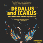 The story of Daedalus and Icarus as told by the Nobel Prize-winning Dario Fo, translated into English, and adapted for our modern age in celebration of the centennial of the Italian master’s birth. It relates the story of Icarus, not as the downfall of an arrogant and prideful youth – as he is so often portrayed – but rather as a cautionary tale against fleeing the world we live in, in favour of the comforts of fantasy.