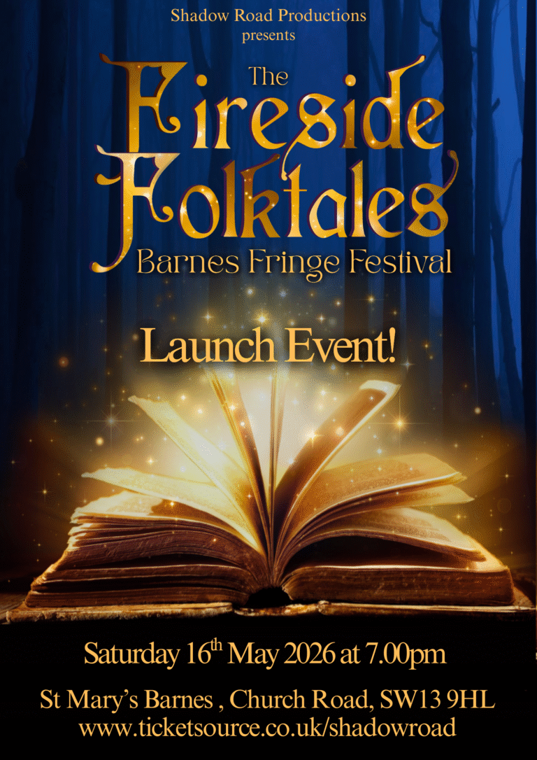 Now, we’re launching an exciting new project: The Fireside Folktales Fringe – a weekend-long festival of classic stories reimagined, and performed in non-traditional spaces around Barnes Pond, SW13, on the 23rd & 24th May 2026, with a launch event at St Mary’s Barnes on Sat 16th May.